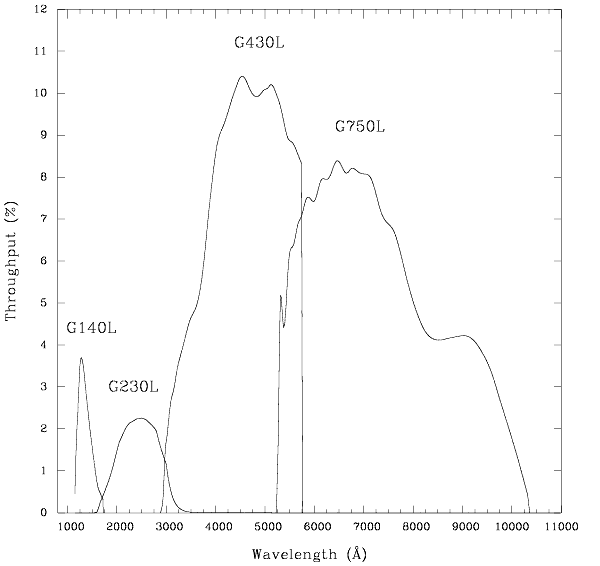 Figure 4.1: System Throughput of STIS's Low-Resolution, First-Order Grating Modes
