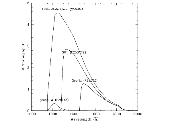 Figure 5.9: STIS FUV-MAMA Clear and Filtered Imaging Mode Throughputs