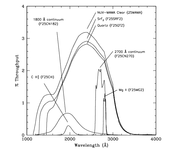 F28X50OIIfilter, and the STIS NUV-MAMAF25MGIIandF25CIIIfilters. The NUV-MAMA intermediate bandF25CN182andF25CN270filters may also prove useful for some programs.- For very deep optical imaging, ACS WFC imaging with
