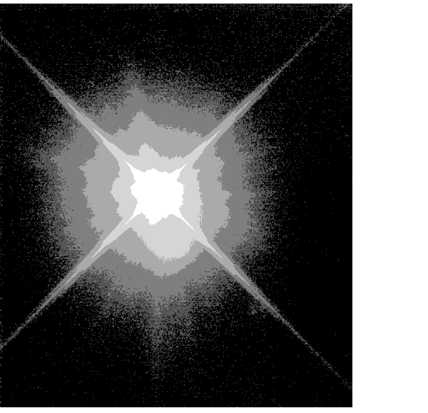 Figure 5.10: A co-added image of SAO 255271 taken using 50CCD shows the structure in the STIS PSF. This figure is plotted with a logarithmic intensity scale and is about 10" across. The ring seen below the center of the PSF is a ghost image. The position angle of this ghost varies as a function of location on the CCD (see Section 7.1.7 and Figure 7.6).