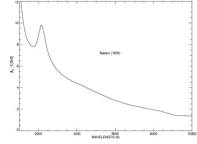 /E(B-V) values applicable to the Galaxy, taken from Seaton (MNRAS, 187, 73p, 1979).