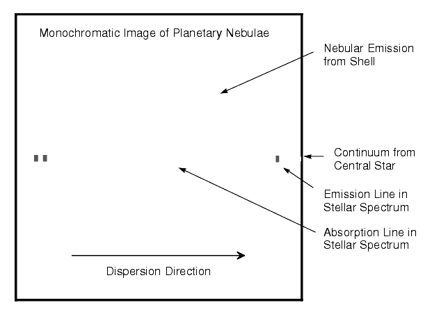 Figure 12.1: Schematic Slitless Spectrogram of Planetary Nebula