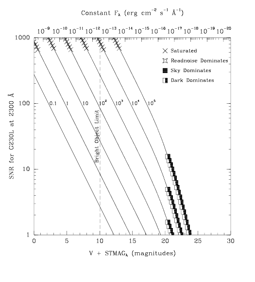 Figure 13.33: Point Source Signal-to-Noise as a Function of STMAG for G230L