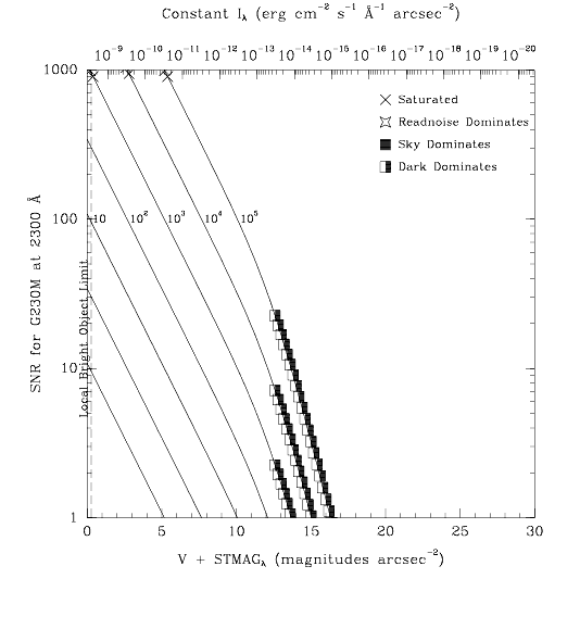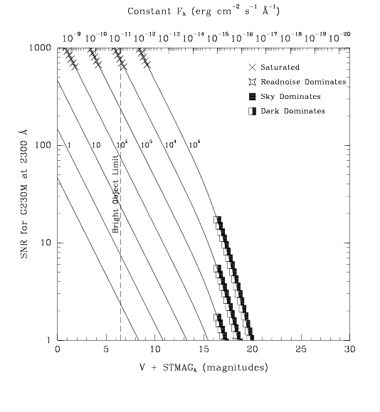 Figure 13.37: Point Source Signal-to-Noise as a Function of STMAG for G230M