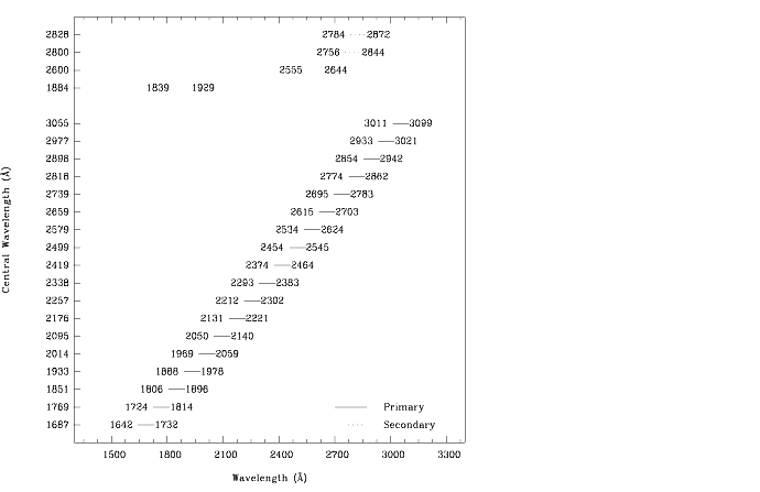 G230Lgrating, theG230Mgrating is used with theNUV-MAMA; it has a spectral range from 1650-3100 Å, however, with a resolving power R~10,000 a single exposure with theG230Mgrating covers only 90 Å, and the grating must be scanned, with a series of exposures taken at 18 distinct settings to cover the full spectral range.Recommended Uses