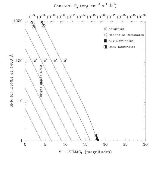 Figure 13.61: Point Source Signal-to-Noise as a Function of STMAG for E140H
