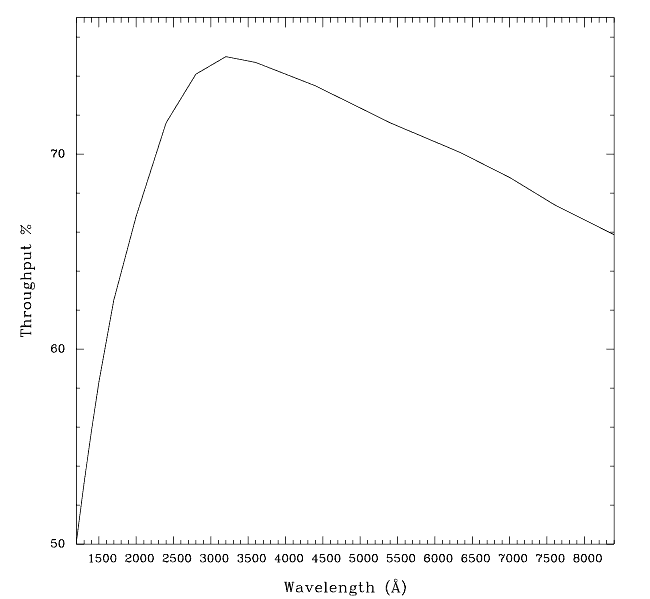Figure 13.66: 52X0.1 Aperture Throughput as a Function of Wavelength.PEAKUPprior to scientific observations.