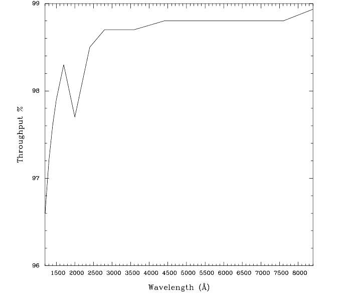 The last in the series of supported long slits used with the first-order gratings and prism and is a good slit for spectrophotometric observations of point sources. The small dip seen at 2000Å is likely due to uncertainties in the numerical calculation, and will not affect the absolute flux calibration.