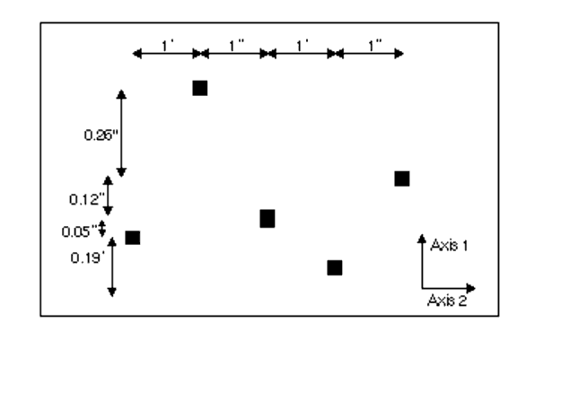 Figure 13.76: Schematic of the STIS Fixed-Pattern Slit Configuration. AXIS1 corresponds to the dispersion direction, and AXIS2 to the spatial direction. Dimensions are not to scale.PEAKUP.