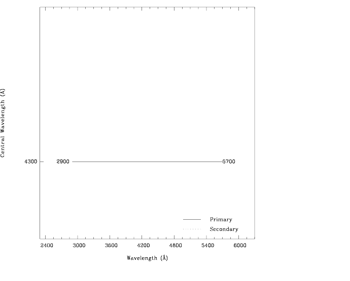 Grating Spectral RangeAverage Dispersion (Å per Pixel) Plate Scale (arcsec / pixel) TiltsCentral Wavelengths Complete Per Tilt G430L 2900-5700 2800 Prime