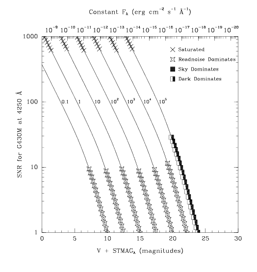 Figure 13.17: Point Source Signal-to-Noise as a Function of STMAG for G430M