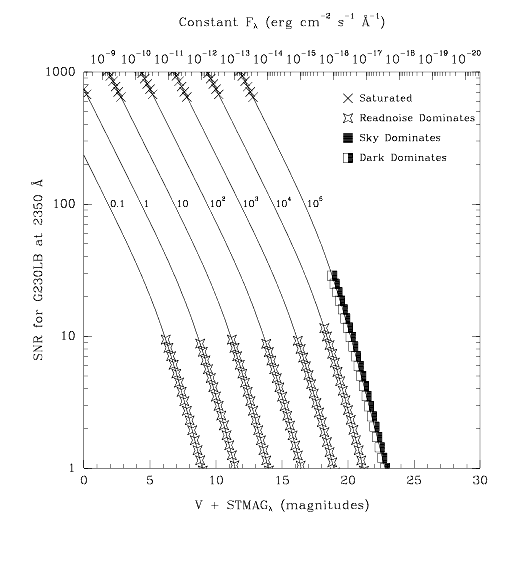 Figure 13.21: Point Source Signal-to-Noise as a Function of STMAG for G230LB