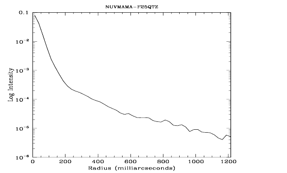 Figure 14.40: Point Source Intensity vs. Radius for F25QTZ NUV-MAMA