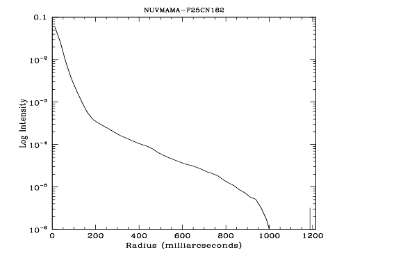 Figure 14.65: Point Source Intensity vs. Radius for F25CN182 NUV-MAMA