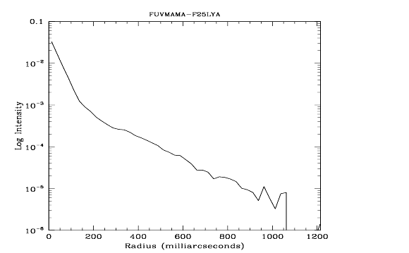 Figure 14.93: Point Source Intensity vs. Radius for F25LYA FUV-MAMA