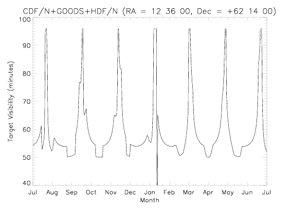 This plot shows the target visibility (in minutes) during the cycle.