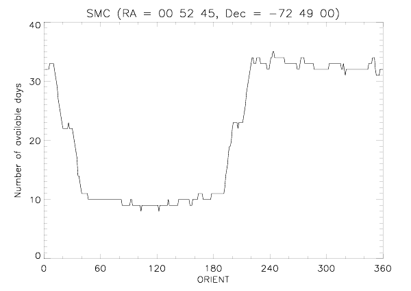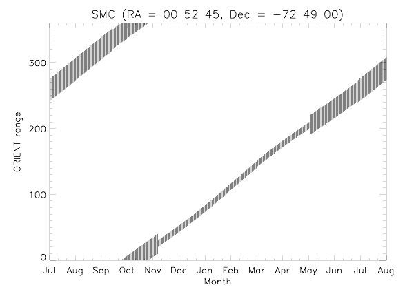 The following plot shows the ORIENT angles obtainable for each day of the year.