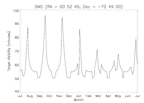 This plot shows the target visibility (in minutes) during the cycle.