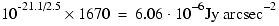 Given a surface brightness of 21.1 magnitudes arcsec-2 at J, convert this into Jy arcsec-2. Taking the zero-point for the J band from Table B.2, we determine that the surface brightness is:
