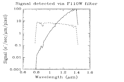 An example of a pair of simulated spectra is shown Figure 4.5, for the F110W filter. In this filter an image of a very red source will be dominated by the flat field response in the 1.2 to 1.4 micron interval, while for a blue source the most important contribution will come from the 0.8 to 1.0 micron interval. The results of our study for the most affected filters are shown in Table 4.4. The other filters are better.