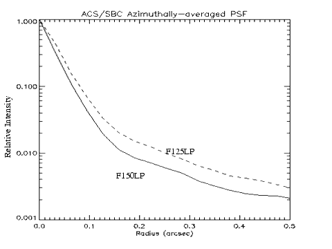 The SBC exhibits low-level extended wings in the detector point-spread function (PSF). Sample MAMA detector PSF profiles are shown in Figure 4.18.